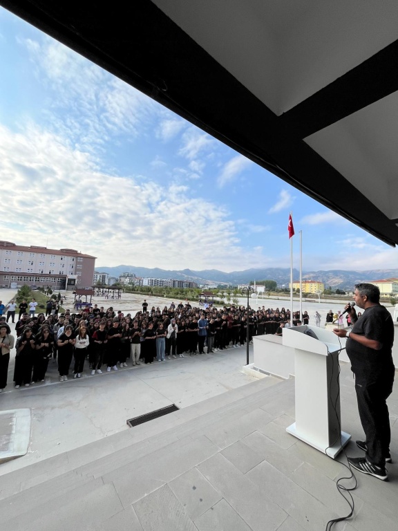 2025-2026 Eğitim-Öğretim yılı açılış programını öğrencilerimizle çoşkulu bir şekilde kutladık. Kutlama programımızda okul müdürümüzün konuşmaları gerçekleşti. Yıl içerisinde trafik kazalarında vefat eden 2 öğrencimiz için Din Kültürü ve Ahlak Bilgisi Öğretmeni İsa ESER Kur'an-ı Kerim okuyup dua etti. Geleneksel olarak açılış töreninde bir önceki yılın mezunları adına öğrencilerimizin konuşmaları gerçekleştirildi.